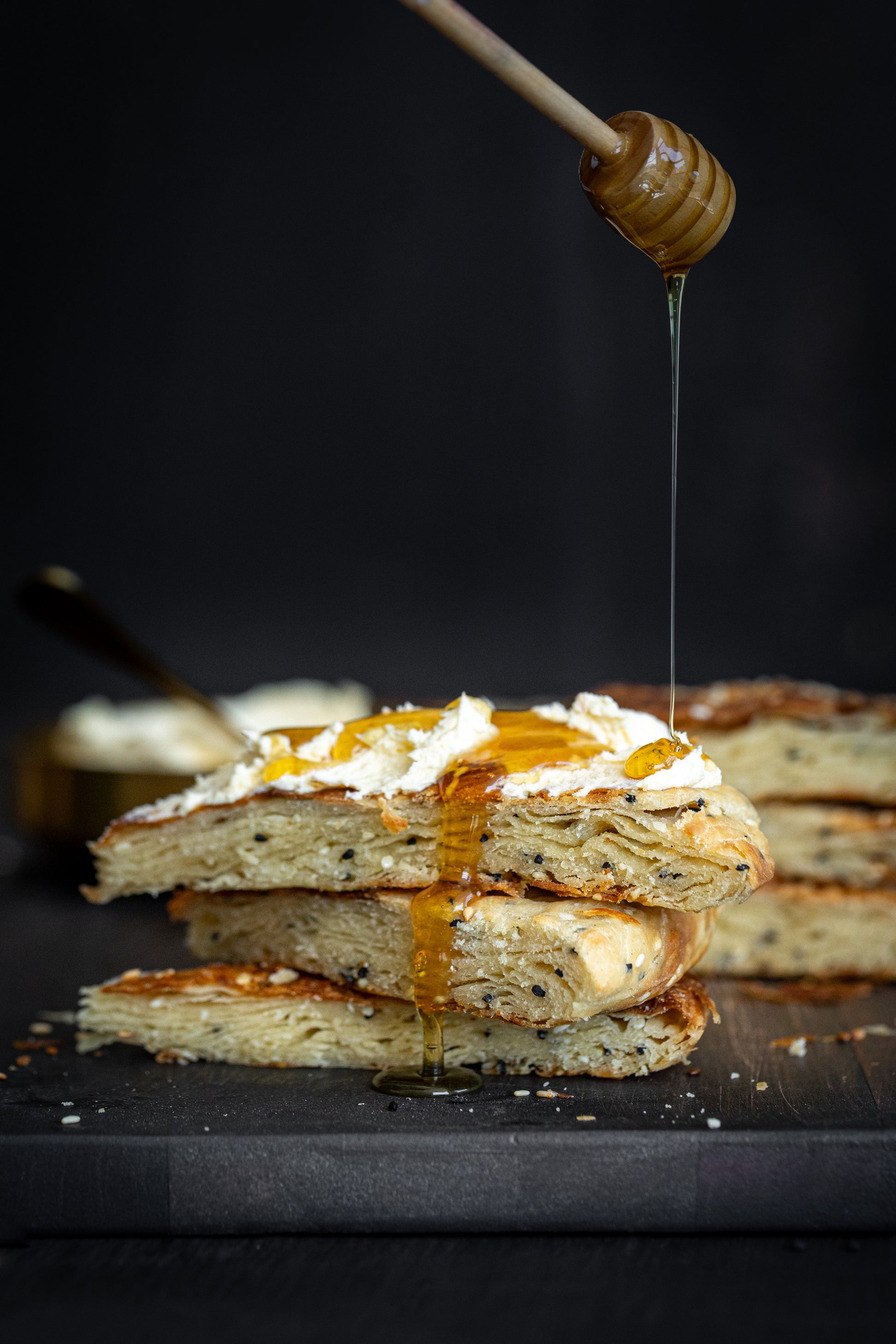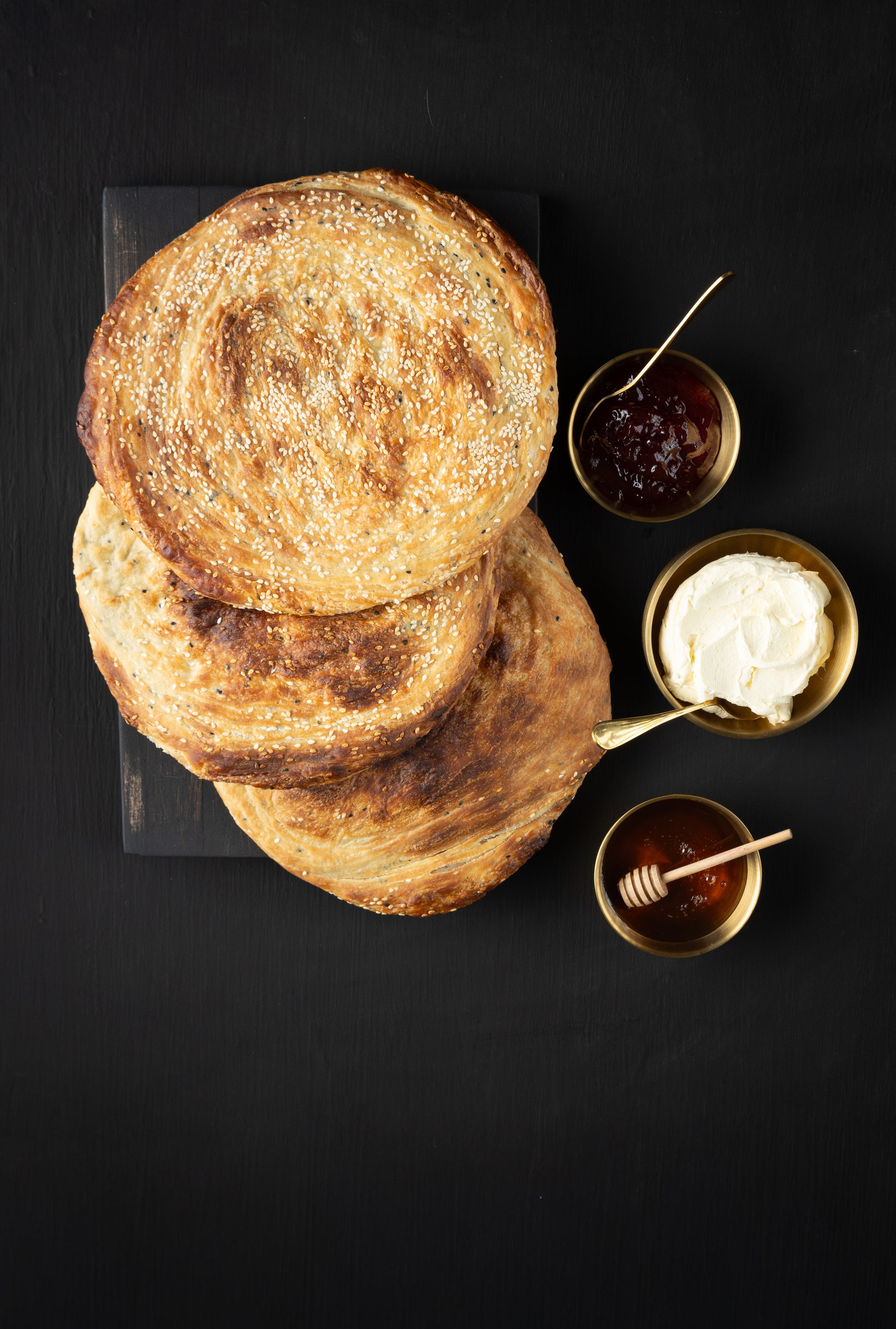 Flaky Yemeni bread, served with thick cream and honey.